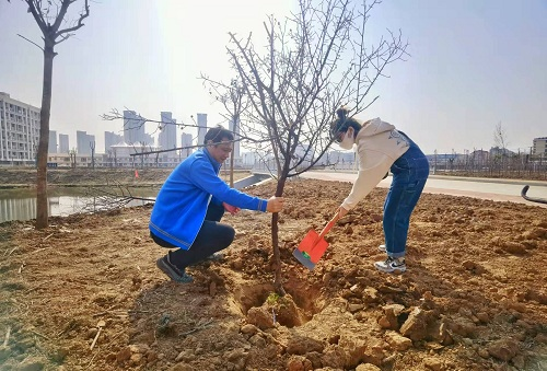 万物勃发,春意盎然,又到了植树造林的大好时节。3月11—12日,在南校区樱花园开展了植树活动,学校党委书记郭国文、学校党委副书记、校长朱虹、党委副书记刘发兴、党委委员白梦清、杨立明、袁胜华、王文康、部分中层干部和后勤保障处全体党员及学生代表百余人等参加了植树活动。