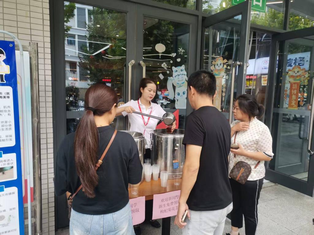 处室加强食品安全管理,各食堂延长供餐时间,提供特色套餐及免费酸梅汤、菊花枸杞茶,为新生办理校园一卡通服务。