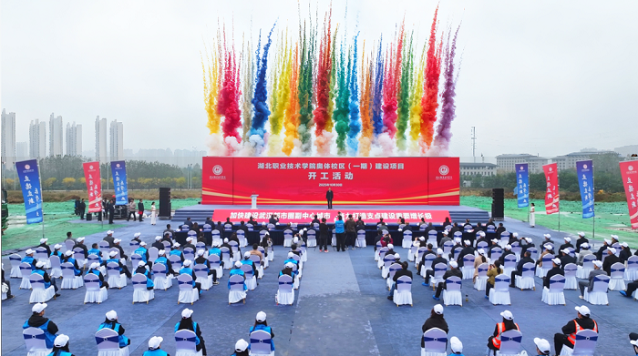 秋高气爽,叠翠流金。10月30日上午,湖北职院奥体校区(一期)建设项目开工。市委常委、宣传部部长吴琼宣布项目开工,副市长朱江为项目建设单位颁发“五证”。校党委书记郭国文致辞,校长郭沙主持活动。市政府副秘书长蒋伟,市委宣传部副部长张莉,市教育局长胡明刚等出席活动。孝南区政府、市高新区管委会、市发改委、市财政局、市自然资源和城乡建设局、市住房和城市更新局、市供电公司分管负责人,全体在校校领导、中层正职干部,施工单位、设计单位、监理单位、造价单位、勘察单位相关同志参加活动。