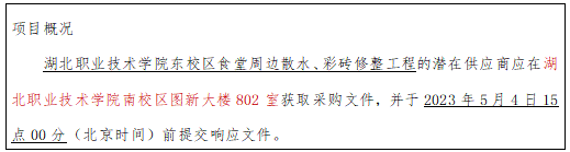 项目名称:湖北职业技术学院东校区食堂周边散水、彩砖修整工程;