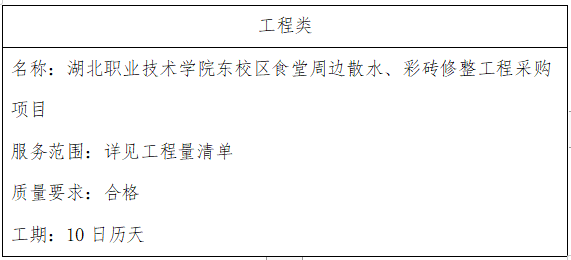 一、项目名称:湖北职业技术学院东校区食堂周边散水、彩砖修整工程采购项目