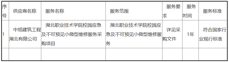 二、项目名称:湖北职业技术学院校园应急及不可预见小微型维修服务采购项目