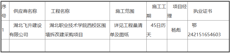 二、项目名称:湖北职业技术学院西校区围墙拆改建采购项目