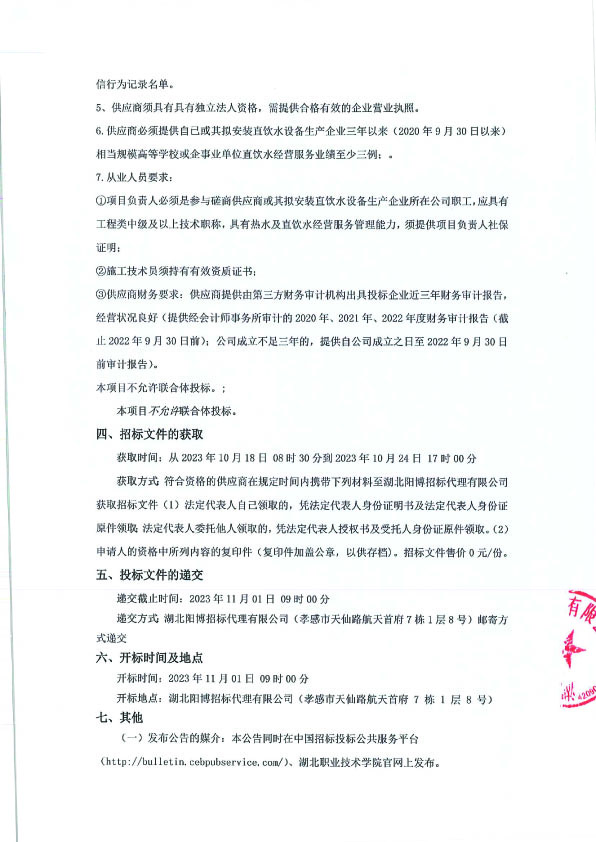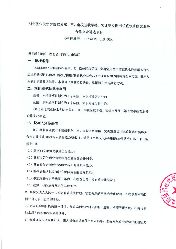 湖北职业技术学院招募东、西、南校区教学楼、实训室及图书馆直饮水经营服务合作企业遴选项目
