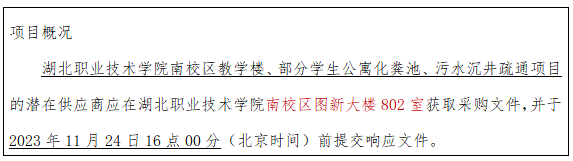 项目名称:湖北职业技术学院南校区教学楼、部分学生公寓化粪池、污水沉井疏通项目;