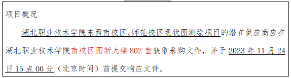 项目名称:湖北职业技术学院东西南校区、师范校区现状图测绘项目;
